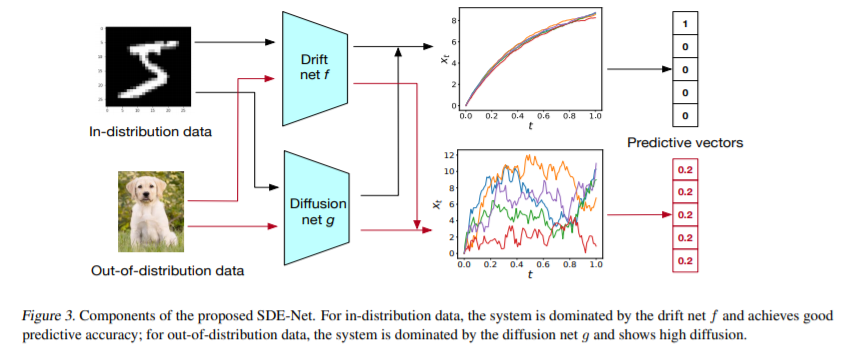 이러한 문제들을 SDE-Net을 사용하여 해결한다. SDE-Net은 drift net과 diffusion net을 번갈아 가며 학습시킨다. drift net으로 예측의 정확성을 높이며 aleatoric uncertainty를 측정할 수 있고 , diffusion net으로 epistemic uncertainty를 측정하게 된다.