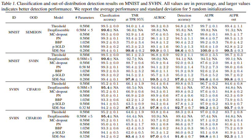 SDE-Net은 10번의 sampling 사용.