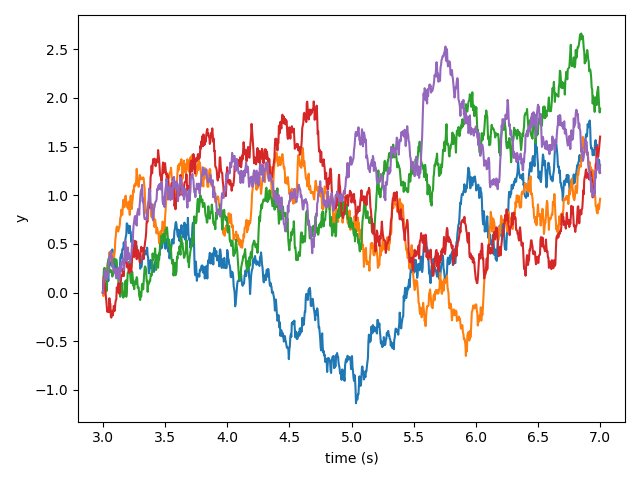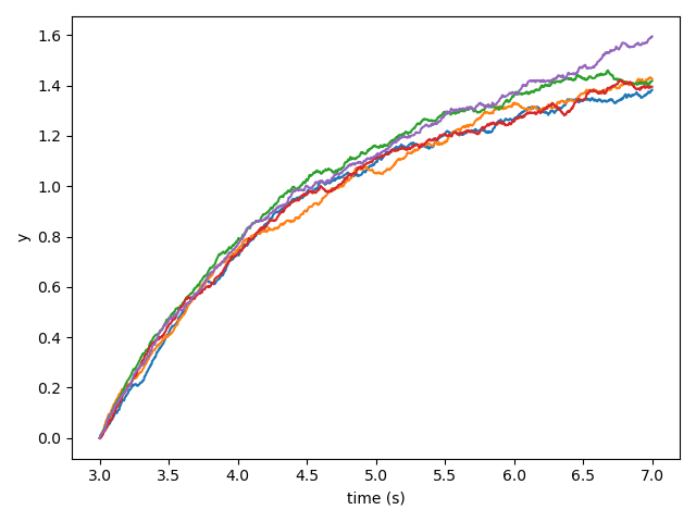 ys[i] = y + mu(y, t) * dt + sigma(y, t) * dW(dt)
