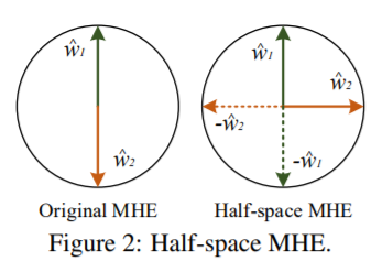 figure2의 왼쪽 그림을 보면 그냥 MHE를 사용했을 때 neuron의 방향은 반대이나 (그래서 distance는 크지만) collinear한 관계가 되버린다. 이런 경우를 방지하기 위해 half-space MHE를 제시한다.