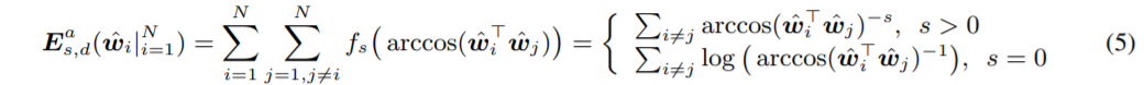 하나의 layer에 N개의 neuron이 있고 각 weight는 d+1 dimension을 가질 때의 상황이다. $f_{s}$는 decreasing real-valued function이며 뭘 쓸지는 선택할 수 있는데 이 논문에서는 $f_{s}(z) = z^{-s} (s>0)$ 를 사용한다. $\hat{w_{i}}$ = $\frac {w_{i}} {||w_{i}||}$ (unit hypersphere에 projection된 neuron)