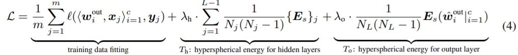 논문의 제목에서도 알 수 있듯이 Hypershperical energy를 minimize 하여 목표를 달성하고자 한다. Energy는 아래 Formulation에서 정의하는 것을 보면 알 수 있고, 높은 energy를 가질수록 redunancy가 높아지고 낮은 energy일수록 neuron이 다양하고 유니폼하게 위치하여 낮은 energy를 가진다고 생각할 수 있다.