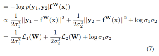 두 번째 uncertainty는 model output으로 predict 할 수 있는 값은 아니고 따로 learnable parameter로 두어 update 한다. mse를 사용하고 output distribution이 gaussian일 경우 식은 다음과 같다.