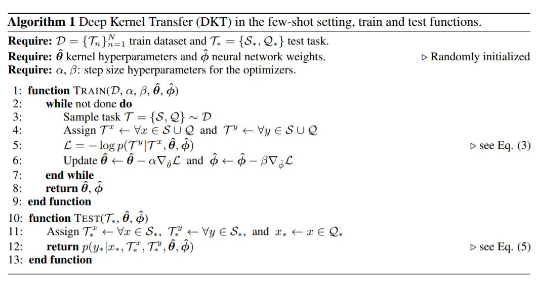간단히 정리하면, 학습시에는 kernel에 대한 hyper-parameter와 neural network를 task-common 하게 학습하고 test 시에 new data $T^{x}_{*}$을 사용하여 gaussian process regression으로 posterior 분포를 찾게 하는 것이다. gp 특성상 kernel function을 뭘 쓸지를 잘 정하는 게 중요한 문제가 된다.