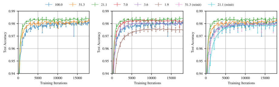3. LTH는 실제로 많은 경우에 좋은 성능을 보이는 것으로 보인다. 거기다 unstructured pruning의 경우까지 훈련 속도를 증가시킨다. 왜 winning ticket은 더 빠르게 converge 하고 좋은 성능을 낼 수 있을까?
