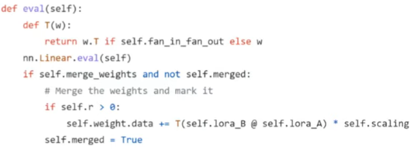 코드로 보면 Fig 12와 같이 작성되어 evaluation 시 원래 matrix와 BA를 미리 더하고 계산하는 식으로 만들 수 있다.