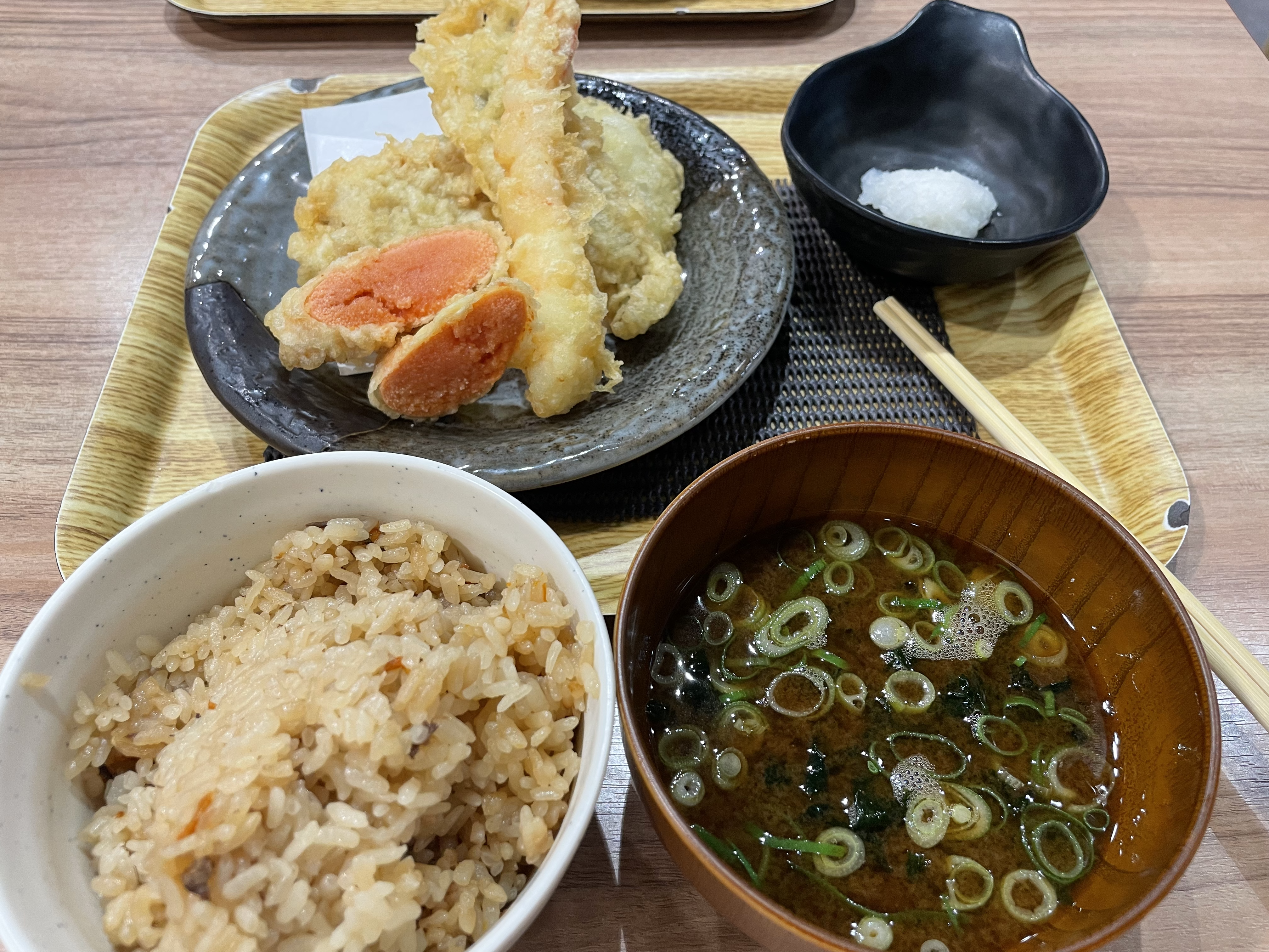 저녁 먹을 시간이 되어 백화점 안에 있던 덴푸라집을 방문하였다. 구글 평점이 3.8이었는데 괜찮겠지 하고 들어갔다. 명란 튀김, 새우튀김, 양파 튀김 등이 나왔는데.. 생각보다 너무 별로였다. 특히 명란은 너무 짰고 튀김이 바삭하지 않았다.