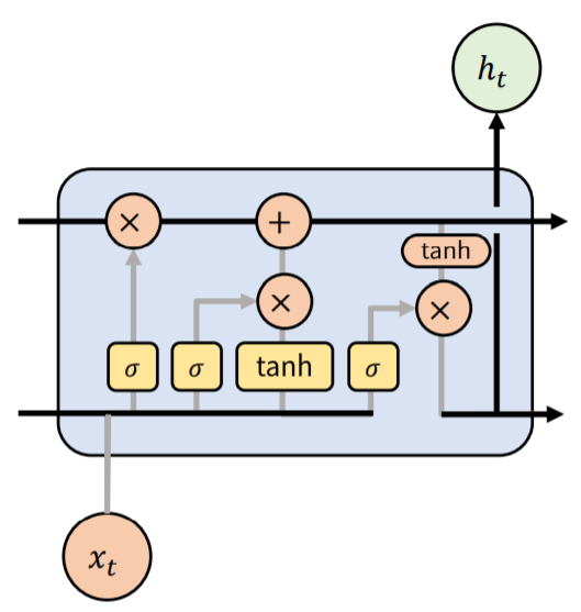 RNN은 보통 LSTM이나 GRU를 사용한다. LSTM은 input값을 받으면 hidden state와 cell state를 가지게 된다. cell state는 LSTM이 굴러가게 하는데 일종의 체인역할을 하며 기억을 오랫동안 유지할 수 있는 구조로 되어있다. hidden state는 위의 설명처럼 계층의 출력이 되며 다음 타임 스텝으로 정보를 넘기게 된다.